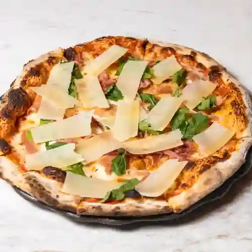 Pesto, crema de aguacate, mozzarelladi bufala y jamón serrano.