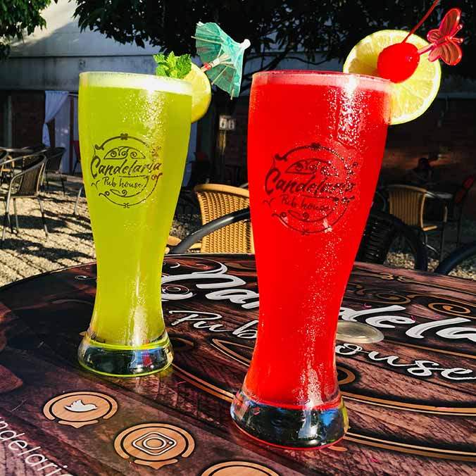 Michelada con escarchado en sal, zumo de limón, sirope, fruta y cerveza a elegir.
