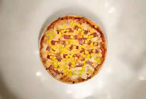 Piiza de salsa napolitana, queso mozzarella, jamón porcion personal