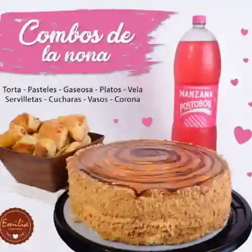 Celebra sin complicaciones con nuestro combo especial: deliciosa torta tres leches (suave, esponjosa y llena de sabor), gaseosa fría y decoración básica (incluye platos, vasos, vela volcán, corona y globo) para armar el ambiente perfecto. ideal para sorprender y disfrutar en cumpleaños íntimos, en casa o en la oficina. ¡la fiesta empieza con un buen bocado!