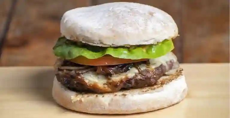 Hamburgesa artesanal de 125g, con lechuga 100% organica, tomate y tocineta.