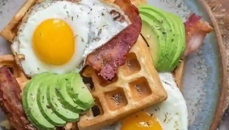 Pancakes doblados tipo taco, rellenos de huevos revueltos, tocineta crocante y un mix de quesos derretidos.