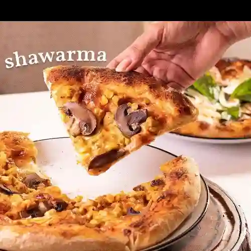 Shawarma con pan árabe relleno de lomitos de pollo, carne, lechuga, perejil, tomate, cebolla, pepinillo, tártára y crema de ajo.