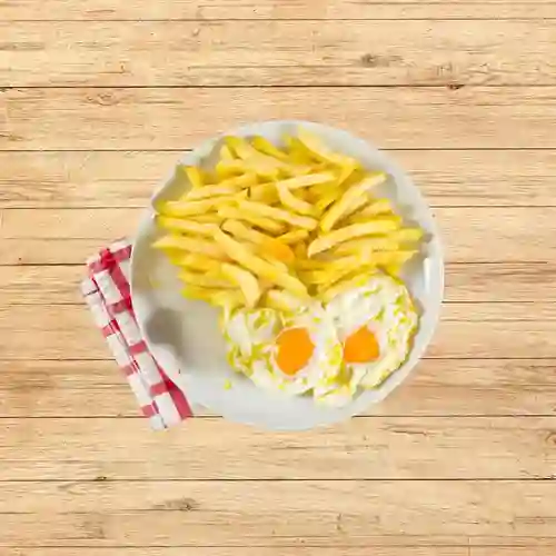 Huevos de preparación a elegir, acompañados de papas a la francesa.