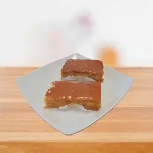 Capas de hojaldre con crema pastelera y dulce de leche.