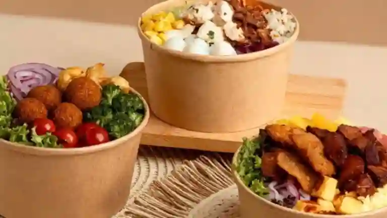 Bowl que incluye 3 proteinas y 6 toppings + snack de plátanitos + una bebida.