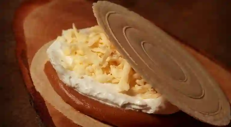 Una deliciosa oblea con dulce de leche y queso.