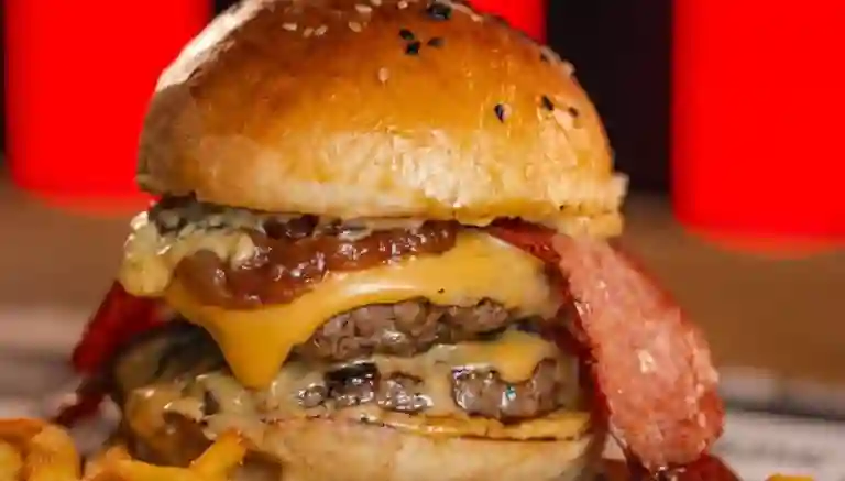 Hamburguesa de 150 gr de carne artesanal, queso costeño asado, tocineta, cebolla caramelizada, verduras y salsas de la casa.