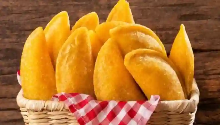 Empanada de yuca rellena de arroz, carne, pollo y huevo.