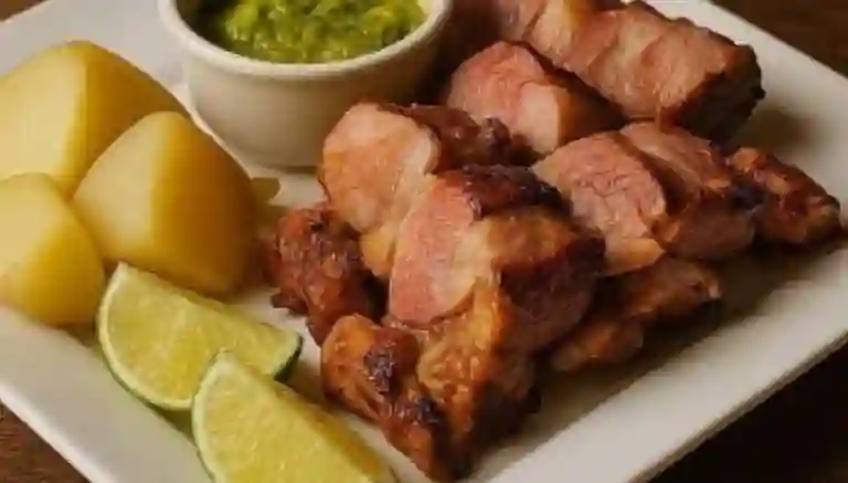Picada para 2 a 3 personas con Bondiola y costilla, acompañada con papa cocida y salsas de la casa.