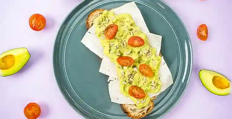 Sándwich en pan focaccia con pollo a la plancha, aguacate, mix de lechugas y mayonesa de ajo.