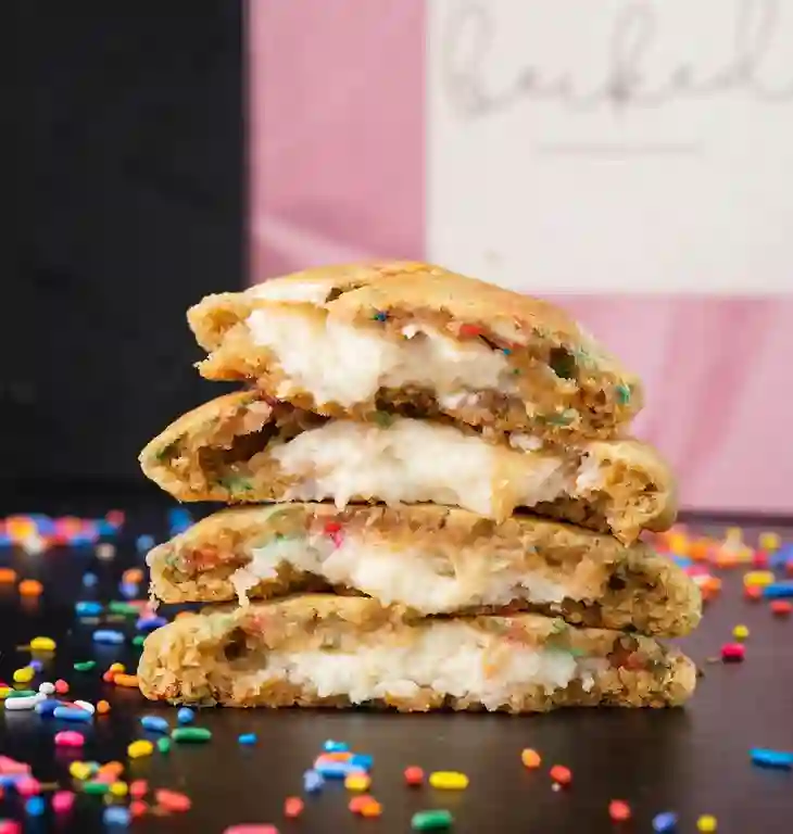 Galleta de vainilla con sprinkles de colores rellena de crema de vainilla.