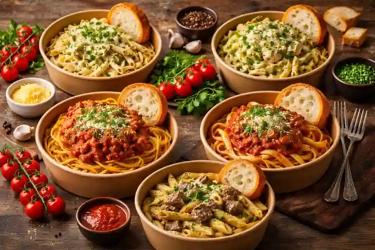 Salsas clásicas italianas preparadas lentamente, como en casa, Un plato que reconforta y conecta. Todos incluyen: Pasta + Salsa + Parmesano + Pan + Bebida 250ml