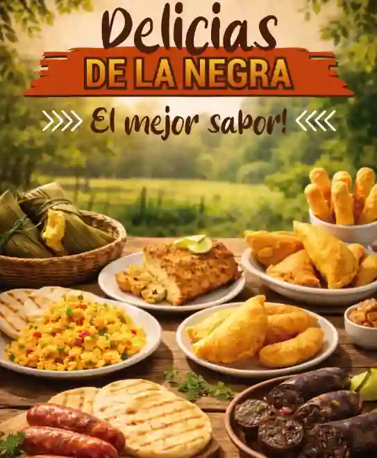 Arepa con hogao, acompañada de ingredientes visibles como maíz, queso y cilantro.