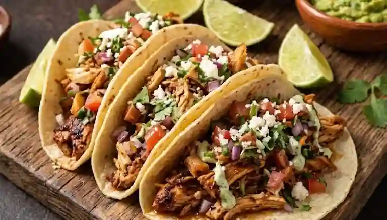 tortillas de maíz amarillo, ligeramente dobladas en forma de "U" pollo picado en trozos pequeños o desmechados, cocinados a la plancha