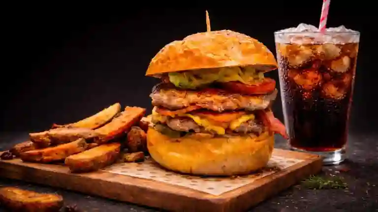 1 deliciosa burger de la casa + papas fritas crocantes + bebida de 400 ml.