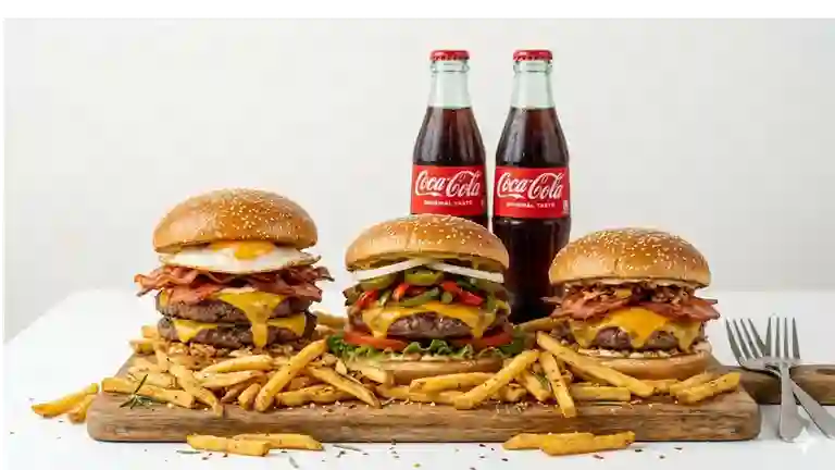 Tres niveles 300g de pura carne de res dividida en tres pisos de pura gloria. Con queso cheddar en cada nivel ycapas de tocino ahumado, cebolla fresca salsa de queso, salsas, para el equilibrio perfecto.
