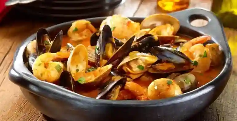 deliciosa pasta marinera, palmitos, pulpo, camaro y pota